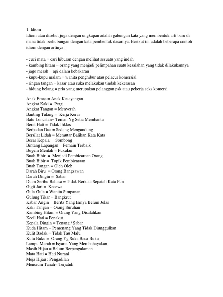 / Kalimat Ungkapan Kepala Batu / Arti Meja Hijau Beserta Contoh Kalimat Mejabrig / Idiom merupakan ungkapan bahasa yang berupa gabungan kata yang menghasilkan makna kiasan.